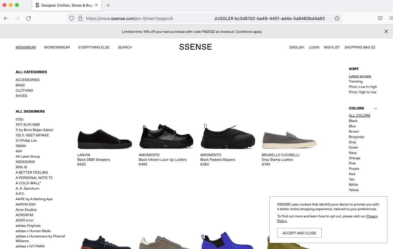 On top of all this, often websites have more than one anti-bot solution installed (as an example SSENSE has both Cloudflare and PerimeterX).