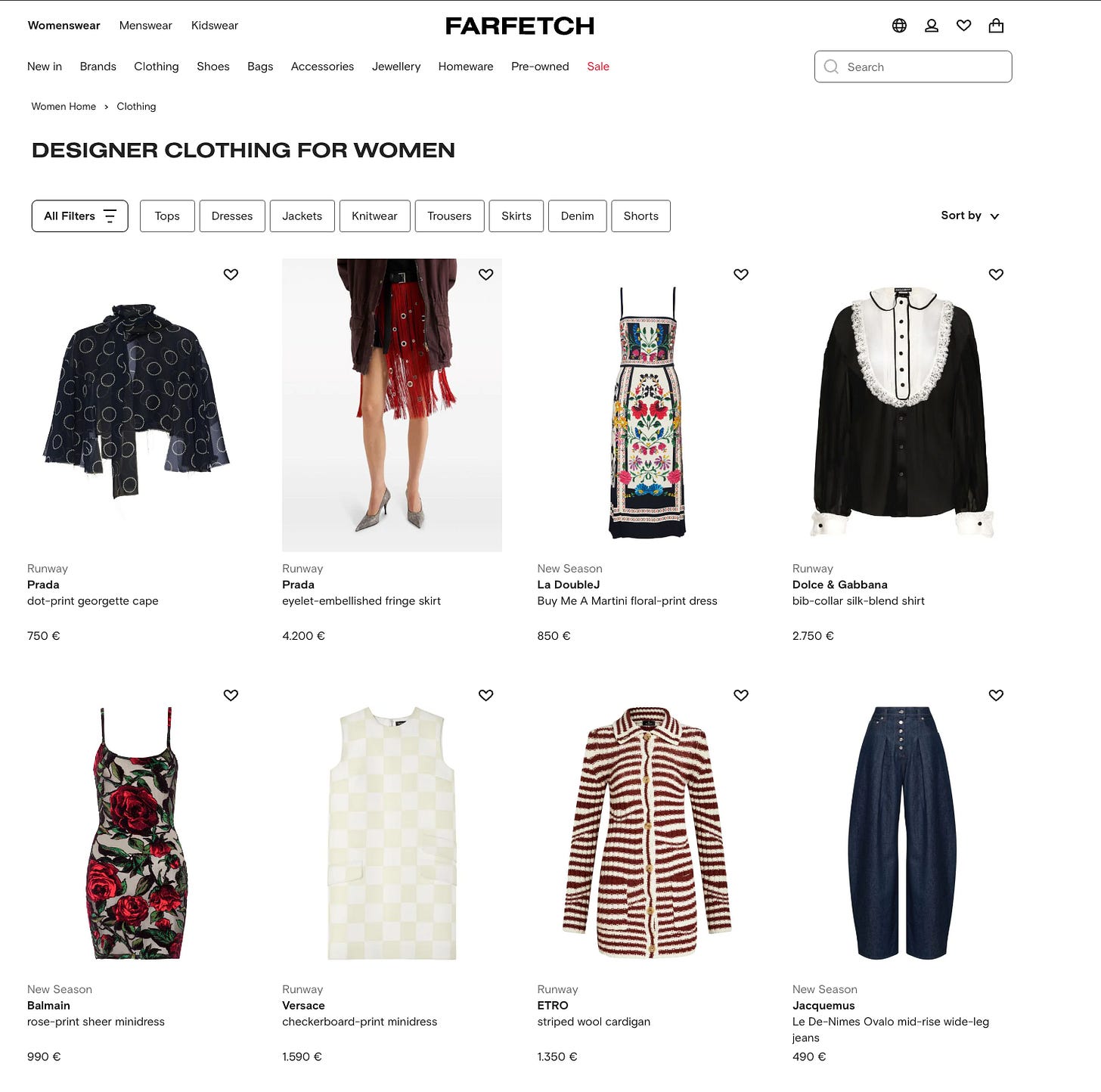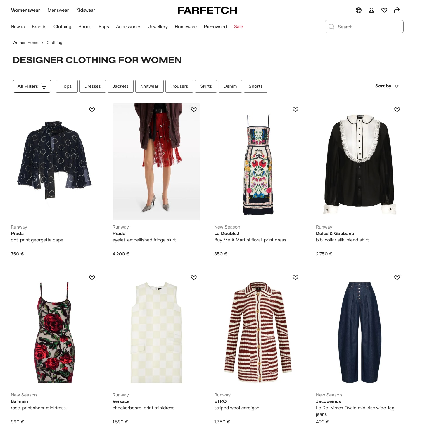 In the case of Farfetch.com, when entering a product list page, we have this luck, both if we query the HTML or the internal APIs, by monitoring the XHR calls.